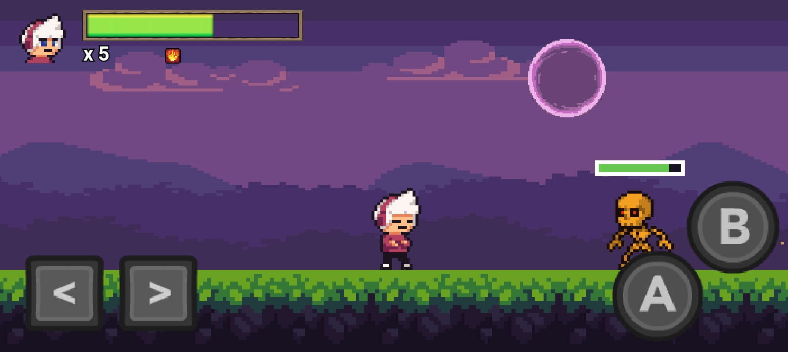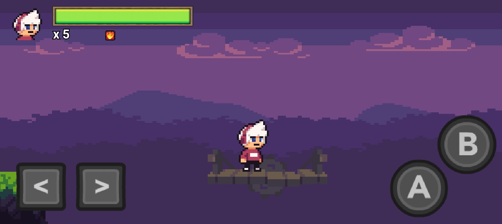 Platform game who player must complete the mission to open portal. About mission, player must light a fire on all statues. And for control, have two Arrow pad, left and right. Button A for jumping, button B for skill. About button B, just hold for a few second for another skill.
